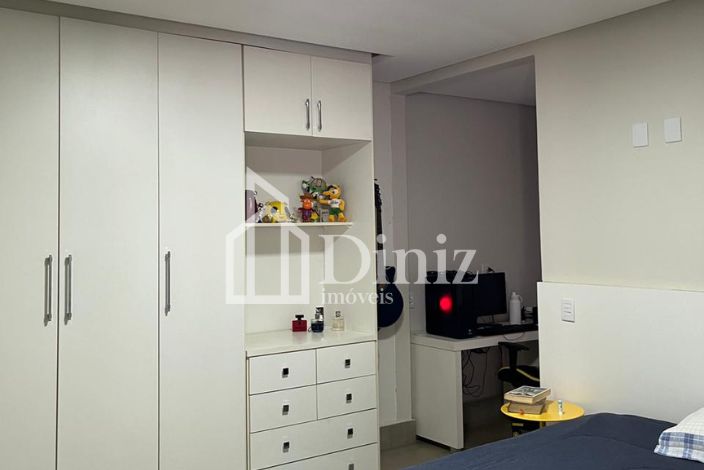 Sala de estar e sala de jantar espaçosas, com acabamento em porcelanato Portinari